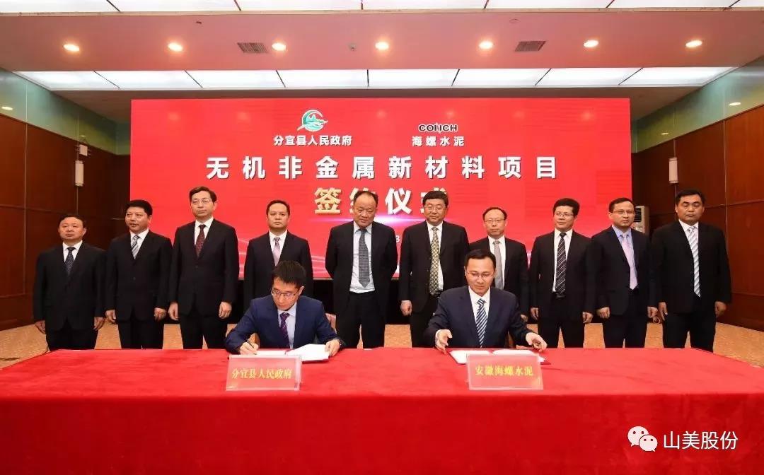 近日,安徽海螺水泥股份有限公司總投資20億元的無機非金屬新材料項目與江西省新余市分宜縣正式簽約,包括年產(chǎn)500萬噸建筑骨料、100萬噸機制砂及裝配式新型建筑材料等項目。市委書記蔣斌,市委副書記、市長猶王瑩等相關(guān)政府領(lǐng)導(dǎo),與安徽海螺集團有限責任公司董事長高登榜等企業(yè)高管出席簽約儀式。海螺分宜今年初已投產(chǎn)的一條年產(chǎn)100萬噸機制砂生產(chǎn)線,國產(chǎn)主機設(shè)備全部選擇山美股份,其余主機設(shè)備全部使用歐洲進口設(shè)備。